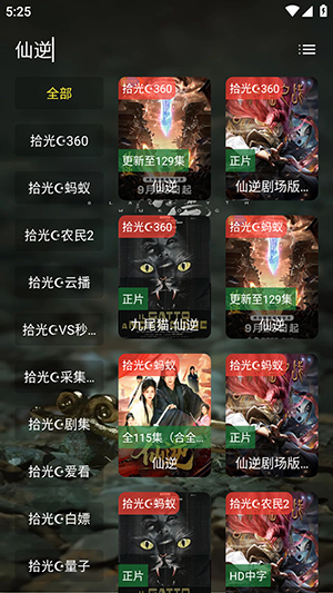 1、软件自带影视源接口配置,无需导入,点击左上角的小方块可以进行切换。