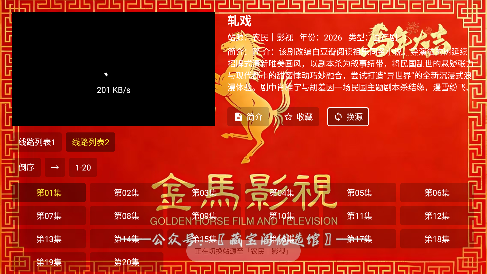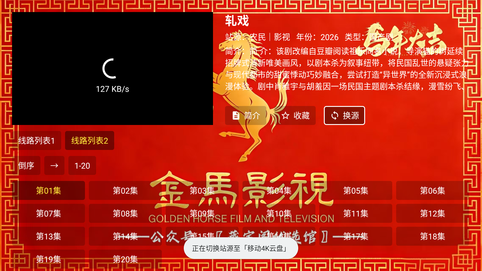 在简介界面,点击换源功能