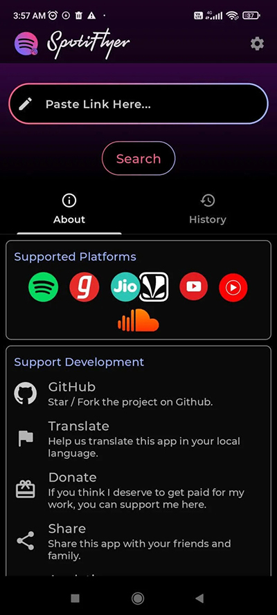 SpotiFlyer最新版是一款开源的音乐下载软件,软件支持多个主流音乐流媒体平台,用户可以轻松下载这些平台上的音乐内容,提供多种高品质的音频格式下载选项,下载的音乐文件可以保存在本地,无需网络连接即可随时播放,根据用户的喜好生成个性化的播放列表,节省用户的数据流量和搜索时间!
