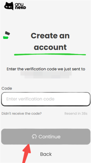 5、将验证码填写到框内即可,然后点击Continue按钮