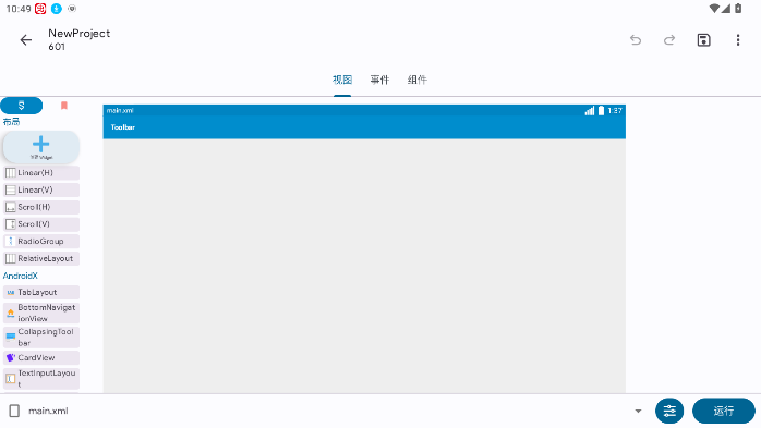 6、之后就会跳转到开发界面,用户可以自由使用里面的事件、视图、组件功能