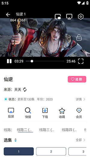 自动检测网络状态,智能切换最优播放线路,支持手动选择清晰度(流畅/高清/超清),弱网也能稳稳播放。