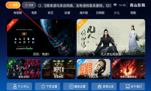 1、进入高山影院软件,点击搜索