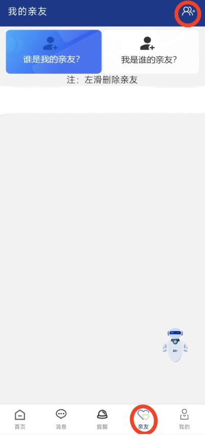 2、亲友登录APP后点击“亲友”或“业务办理”添加需代办人员信息。