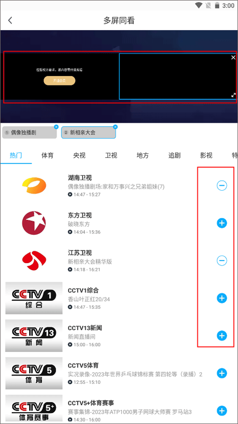 2、如果想要多屏播放,就可以点击右边的“+”来添加。