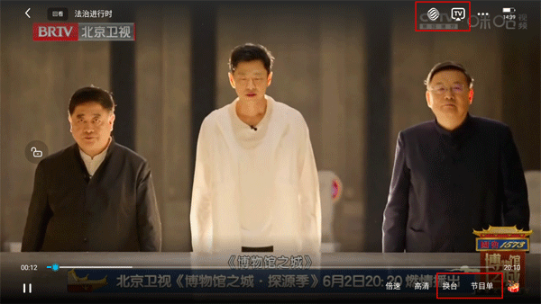 4、app就会自动切换到横版模式,进入播放界面,你可以实现投屏、换台、查看节目单等操作。