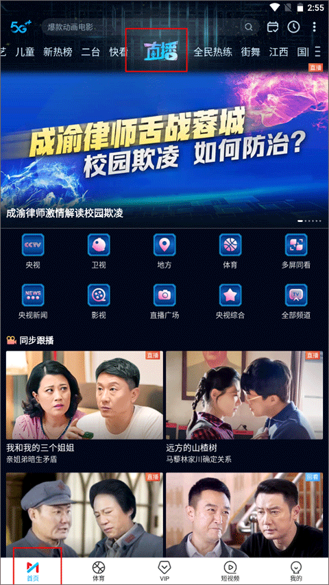 1、你可以通过【首页】的直播频道直接进入到各大卫视、央视节目中。