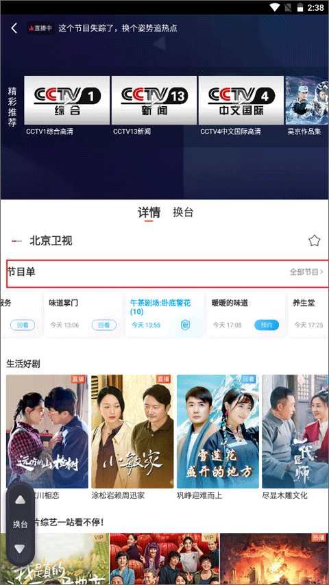 2、在卫视的详情页中你会看到节目单,点击全部节目了解有哪些节目。