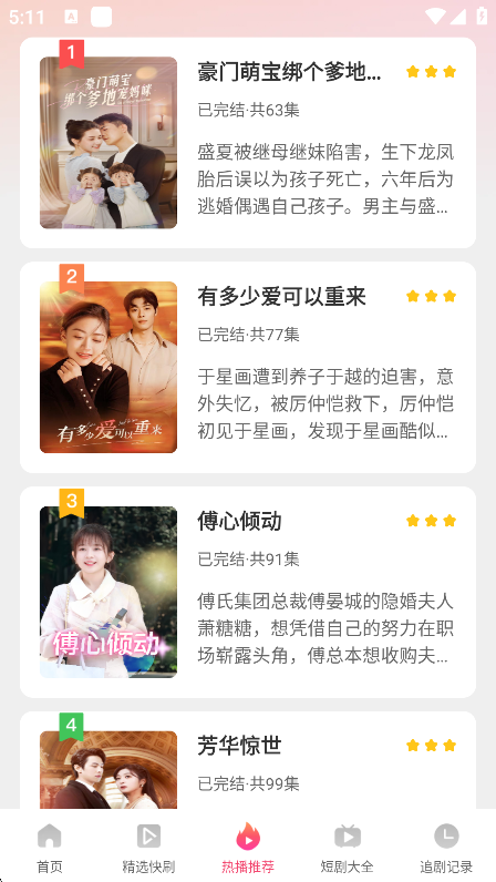 4、高清流畅画质:所有短剧均提供高清播放画质,画面清晰、播放流畅,即使在移动网络环境下也能获得良好的视听体验。