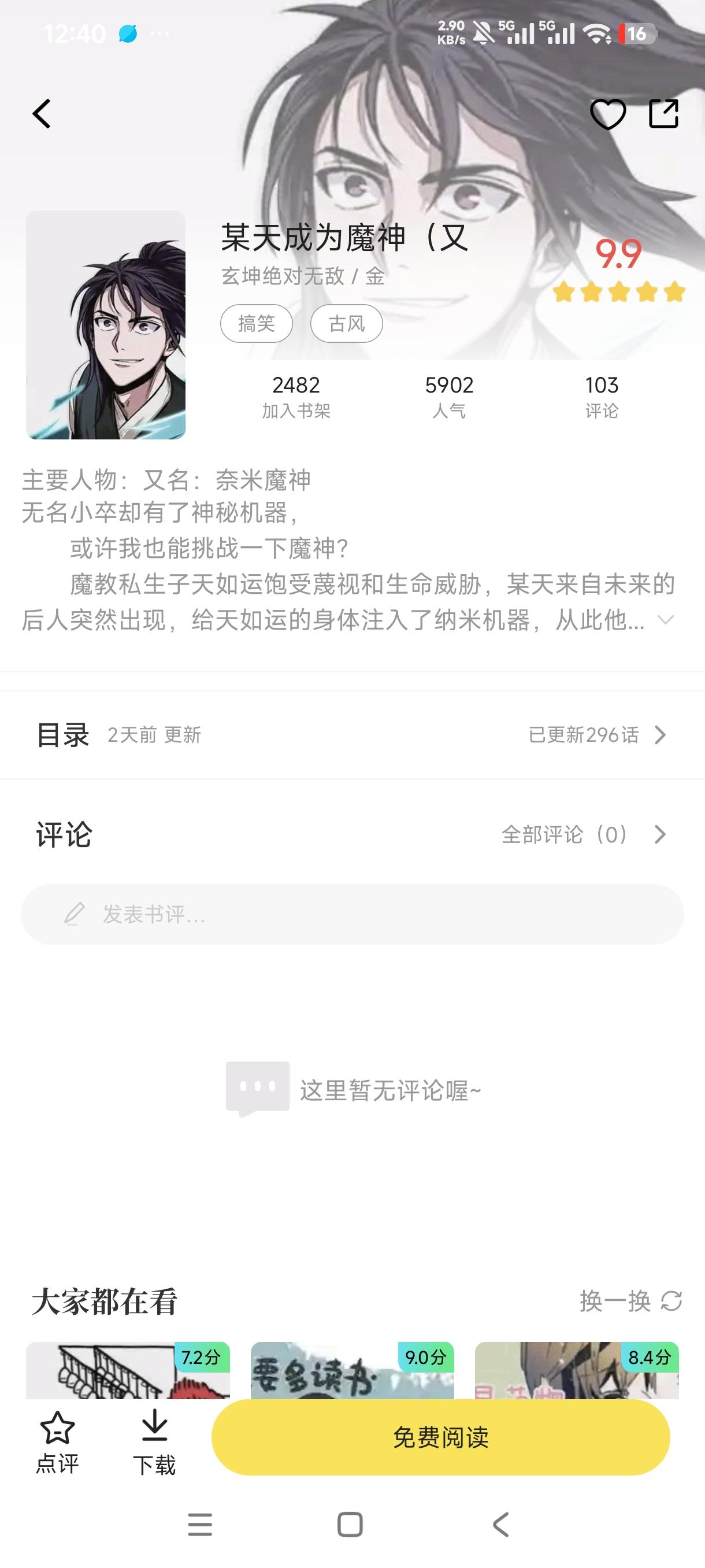 8、找到喜欢的漫画即可进入详情页,能够点击免费阅读。