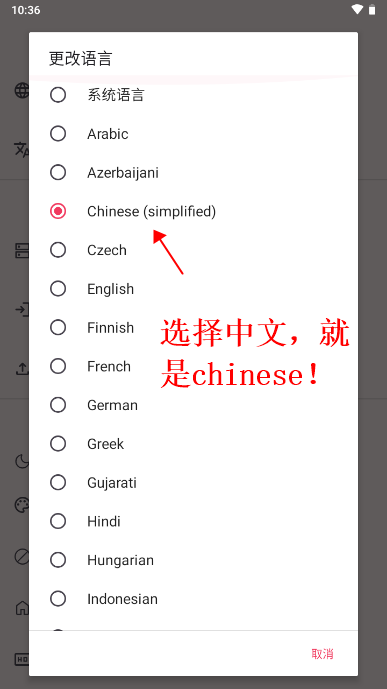 2.在更改语言这一栏目,可以进行语言更改,选择中文就可以了。