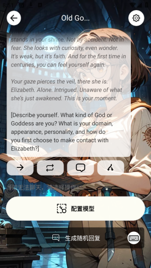 视觉小说模式:全屏沉浸式对话界面,搭配自定义背景图与动态文字效果,营造电影级叙事体验。
