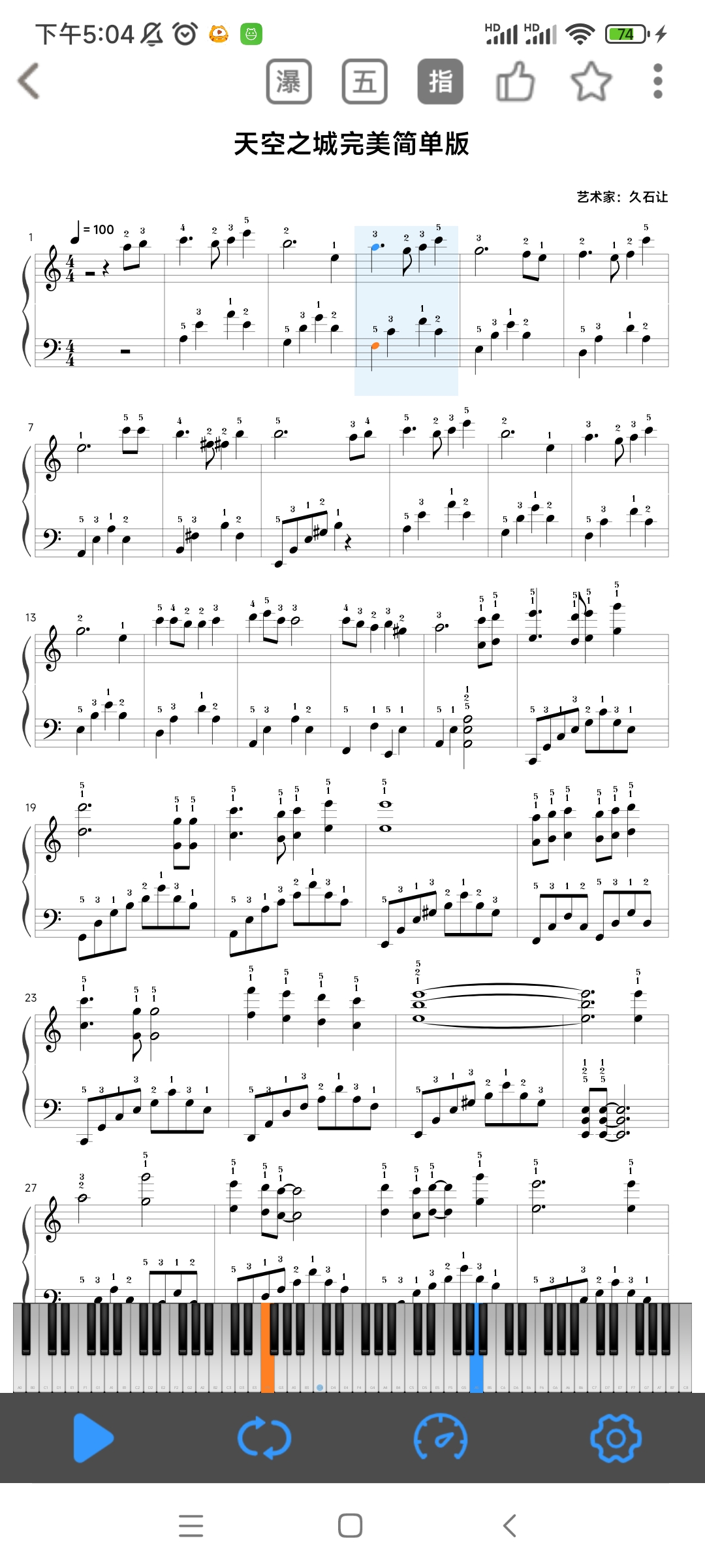 3、点击左边是看曲谱弹奏。