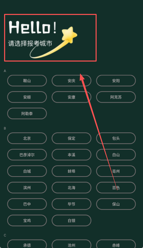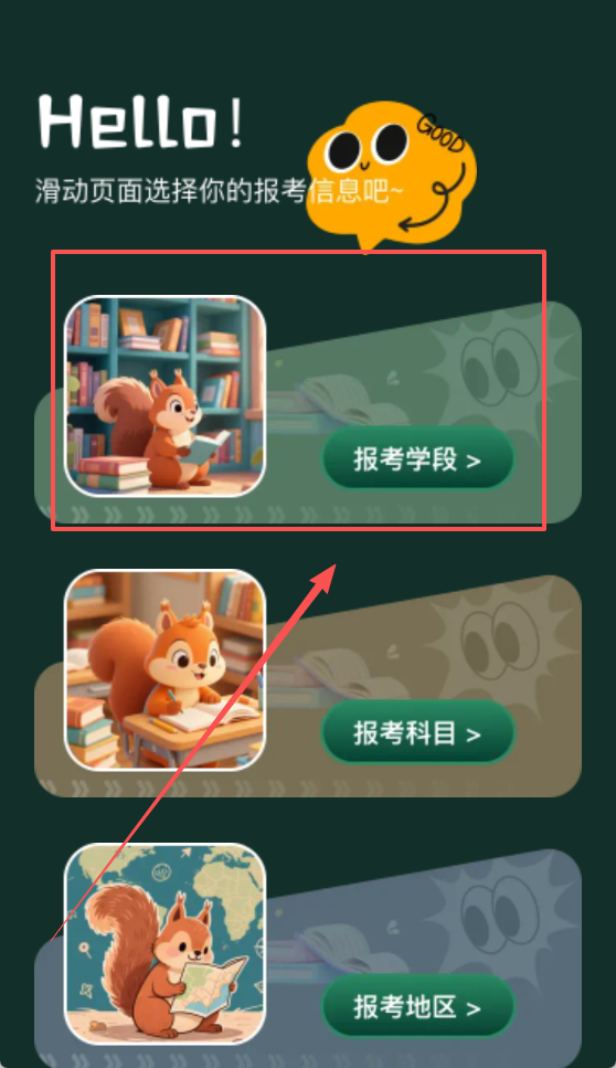 3、在界面中选取自身所属的学段信息并再次点击进入下一步,随后完成报考城市的选定即可进入主界面区域。