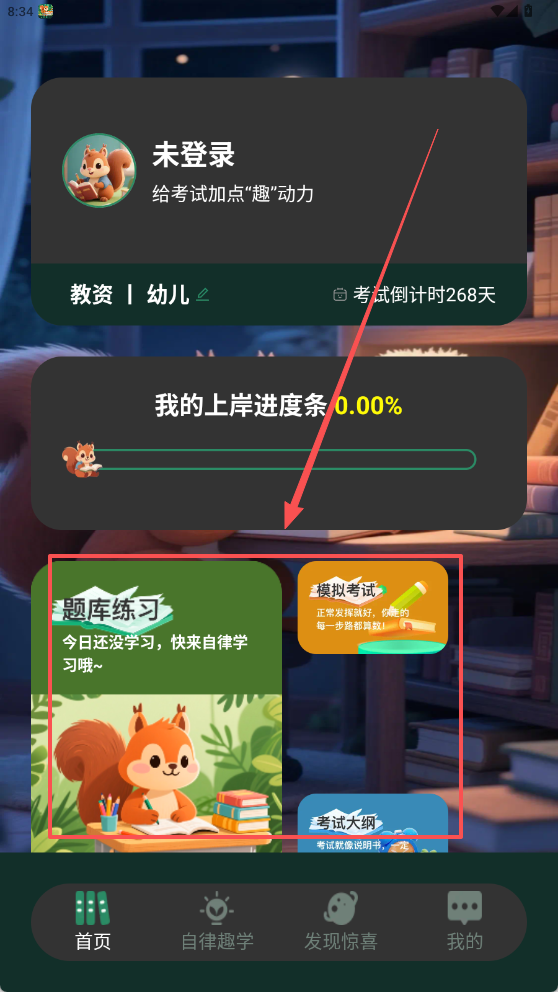 4、应用内置一键打卡功能作为简单易用的学习辅助工具,支持考生快速完成学习打卡以记录每日努力。