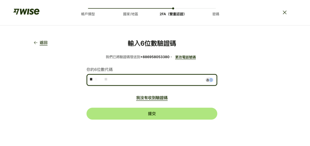 输入简讯验证码