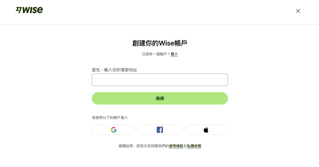 进入Wise 官网,点选右上角「注册」