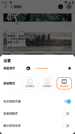 7、点击下方的设置选项可以设置阅读模式。