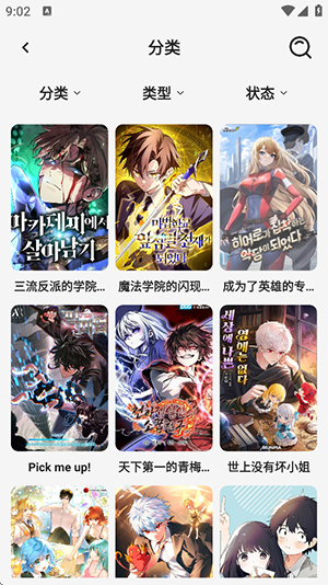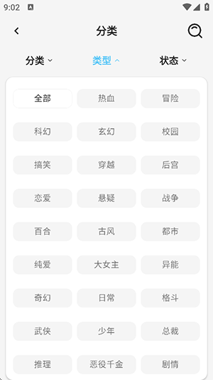 2、点击分类板块可以筛选感兴趣的漫画。