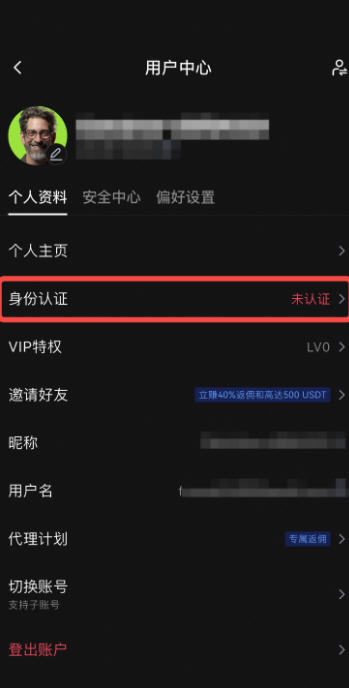第 1 步:打开 Gate 手机 App,登录个人账户,点击左上角【头像】,再次点击头像标识,选择【个人资料】-【身份认证】-【去认证】,进行个人身份认证。