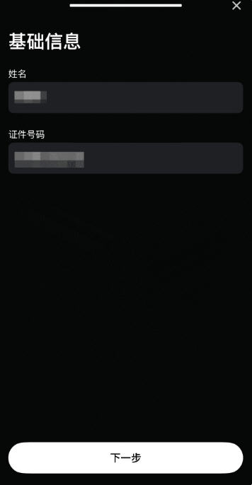 最后,确认识别的基础信息(姓名/证件号码)是否正确,核实无误后点击【下一步】或修改信息。