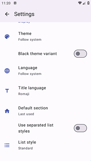 5、个性化设置:在设置界面,可自由切换浅色或深色主题,选择偏好语言;同时还能查看 MyAnimeList官方公告、浏览行业新闻,获取反馈渠道,甚至随时退出账号,掌控使用体验。