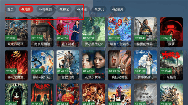 1、打开清流影视tv软件后,最上面的分类导航,能选择不同的类型;