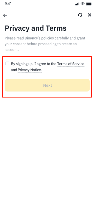 6. 阅读并同意服务条款和隐私政策。勾选复选框进行确认,然后点击【下一步】。