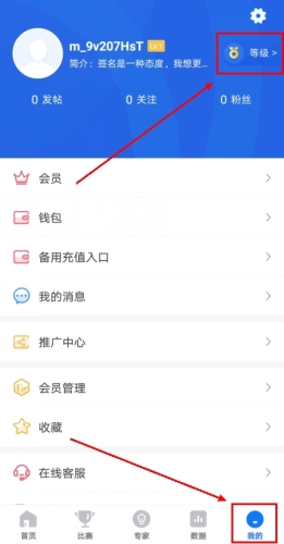 1、依旧还是在我的板块当中,点需要找到个人信息栏右侧【等级】。