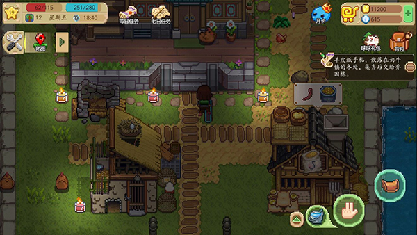 1、采用像素风格的画面,构建了一个完整而祥和的小镇,在镇子上开启你的生活