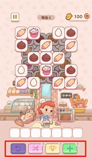 1、打开进入烘焙猫游戏,点击三个相同物品即可进行消除。