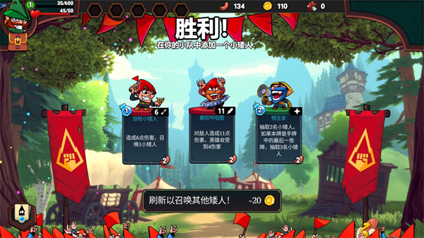 6、当你击败敌人后就可以获得胜利,击败敌人后玩家可以获得经验与金币,并同时选择一个小矮人加入到队伍中。