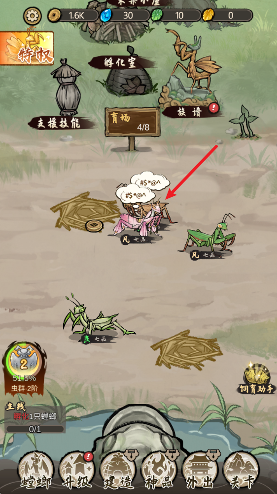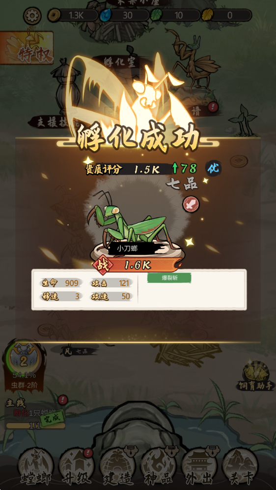 2、家园建设:改造个人领地为螳螂提供更好的生长环境,间接增强其能力值。