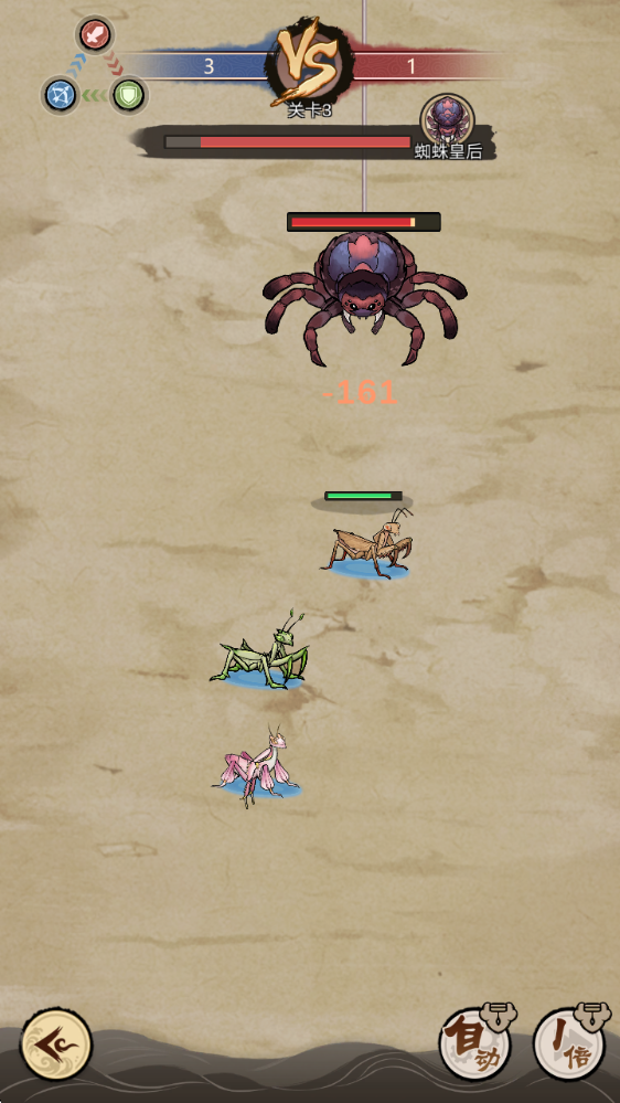 4、进入战斗后,螳螂们就会自动的进行战斗。