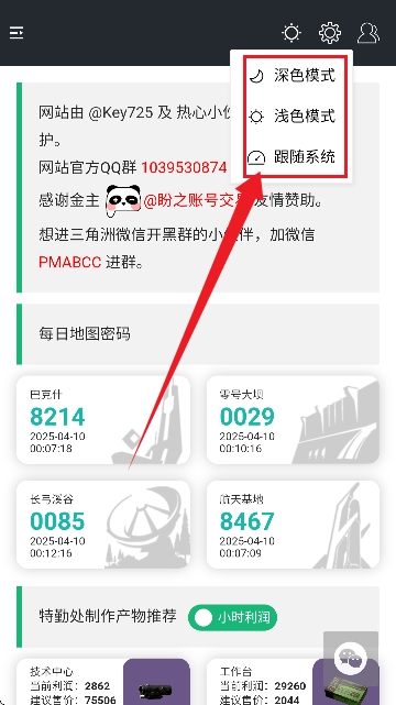 3、例如我们可以查看每日地图密码,或者特勤处制作产物推荐,