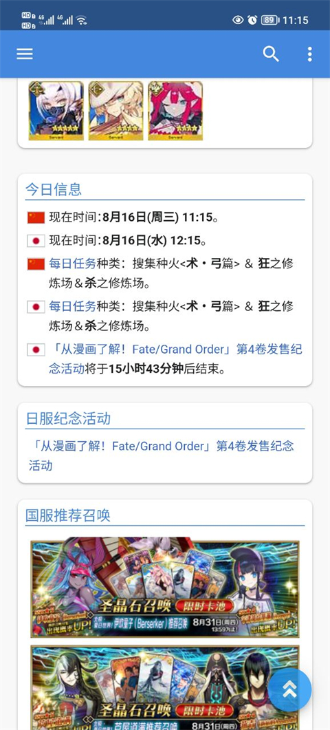 2、核心辅助功能实用:支持模拟抽卡,玩家可提前体验抽卡概率,规划抽卡策略;实时更新活动一览与卡池信息,不错过关键活动与心仪卡池;还能直接下载日服 FGO,无需额外寻找下载渠道,一站式满足玩家游戏辅助需求。