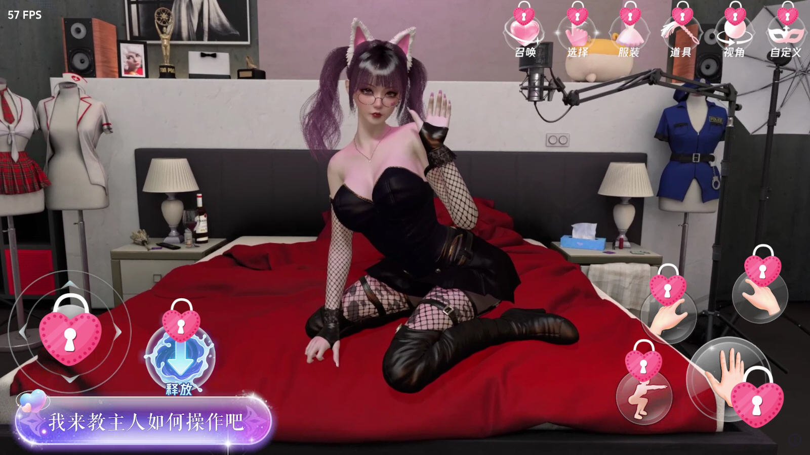 4:在互动界面,可看到各种操作选项(如召唤、选择、换装、动作等),虚拟角色会引导操作,可根据提示进行互动。