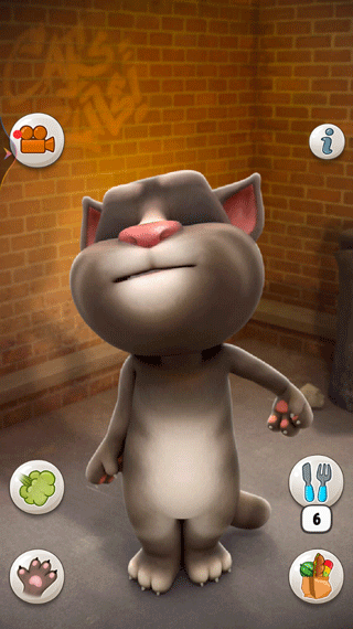 9、按下电话按钮,让汤姆与原版的会说话的汤姆进行游戏,他会用滑稽的声音复述他自己的话。
