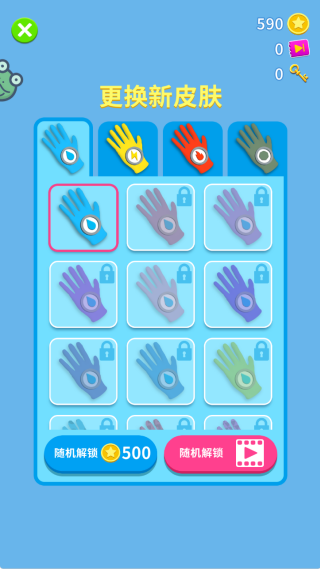 4、更有超多手套皮肤解锁购买使用,利用关卡金币随机购买解锁。