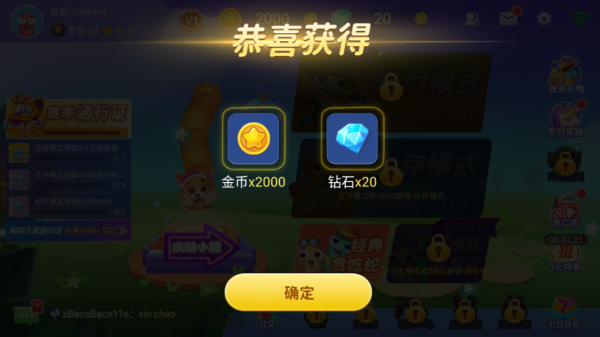 1、打开游戏进入,初次进入游戏就可以获得金币和钻石奖励;