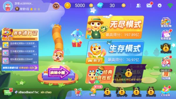作为继承经典又突破创新的在线贪吃蛇手游,《贪吃蛇在线》构建了 “成长 - 对抗 - 社交 - 福利” 的多元玩法体系,精准解决传统贪吃蛇玩法单一、缺乏互动的痛点。玩家操控小蛇在广阔地图中吞食光点成长,通过灵活走位、策略加速躲避对手或围堵敌人,在对抗中争夺生存空间;新增的迷宫元素增加探索难度,大逃杀模式则强化竞技紧张感,让每一局游戏都充满变数。社交层面支持好友组队与实时语音沟通,可共同制定战术、协作取胜;皮肤系统涵盖常规外观与节日限定款,玩家可自由搭配打造专属小蛇;更有分红机制与福利活动,让玩家在娱乐之余还能获取额外收益,全方位提升游戏的可玩性与吸引力。