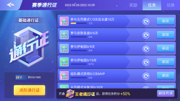 8、进入赛季通行证,点击【任务】,这里会有很多的任务需要玩家完成,完成以后可以获得相应的奖励。