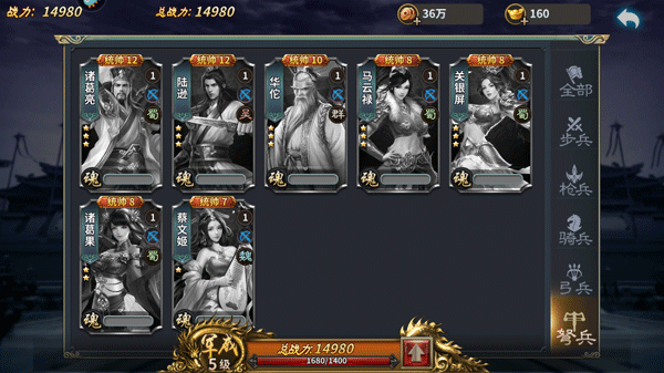 自由组合阵容:骑兵突进、弓兵压制、谋士控场……