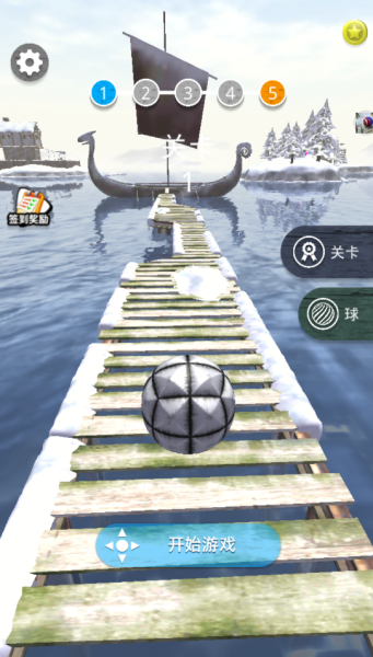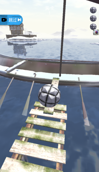 1、进入游戏,控制游戏中的小球开始闯关,在独木桥上灵活的移动。