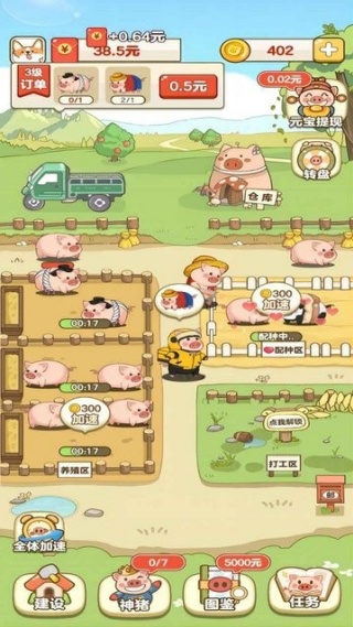 成为牧场主人,合理规划资源,可以精心照料小猪,通过合成策略培育出更高品质的小猪家族。