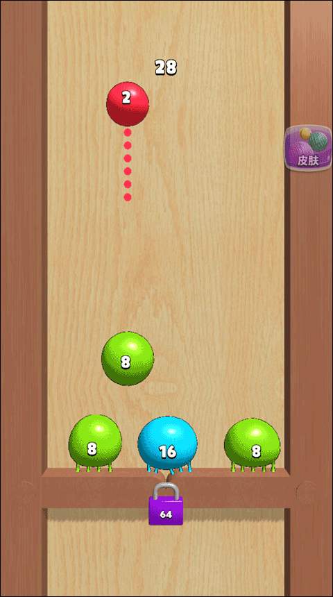 4、然后,在这里,玩家可以拖动不同颜色的球进行合成,只需要在合适的情况下松开手指即可实现大泡泡的下落;