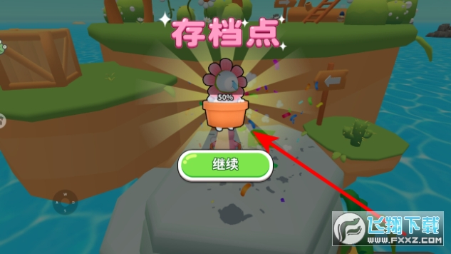 3、探索中抵达存档点,触发存档机制,显示进度后点击继续,可保存当前探索进度,后续失败可从存档点重启,持续推进荒岛冒险。