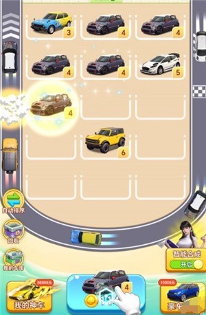 2,接着将相同的车型拖动到一起并且进行合成,就能获得更高一级的豪车。