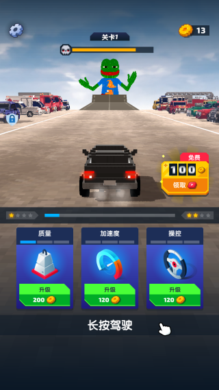 4、车辆解锁体系完善:随着挑战成功次数增多,可解锁性能更强的汽车,助力玩家应对更坚固的怪兽,增强游戏进阶动力。