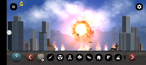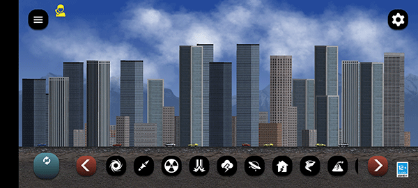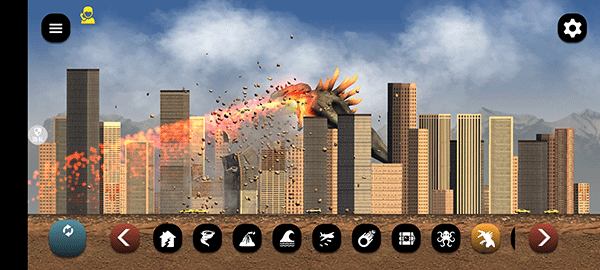 1、游戏打开后,是以城市为背景的地图,我们可以自由切换场景,底下一排的是灾难模拟